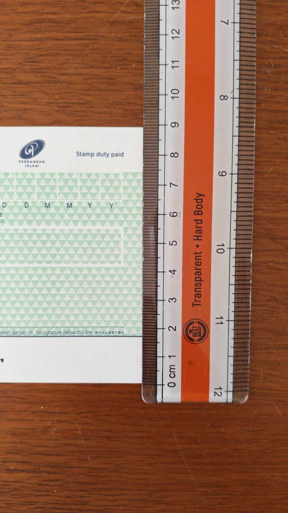 - 2 camera snapshots to show the measured width and height of the cheque with a RULER. (view sample)